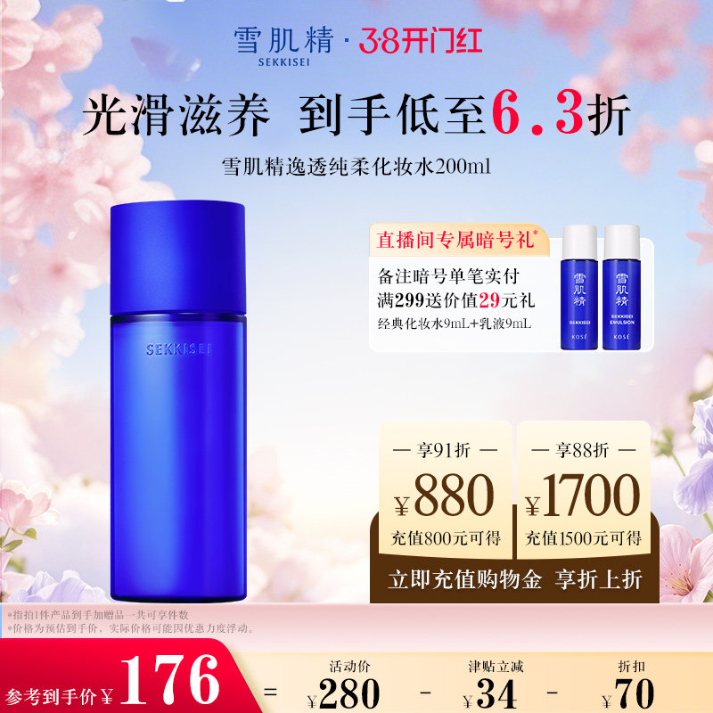 雪肌精逸透纯柔化妆水200ml润白紧致毛孔淡痘印 会员礼特惠