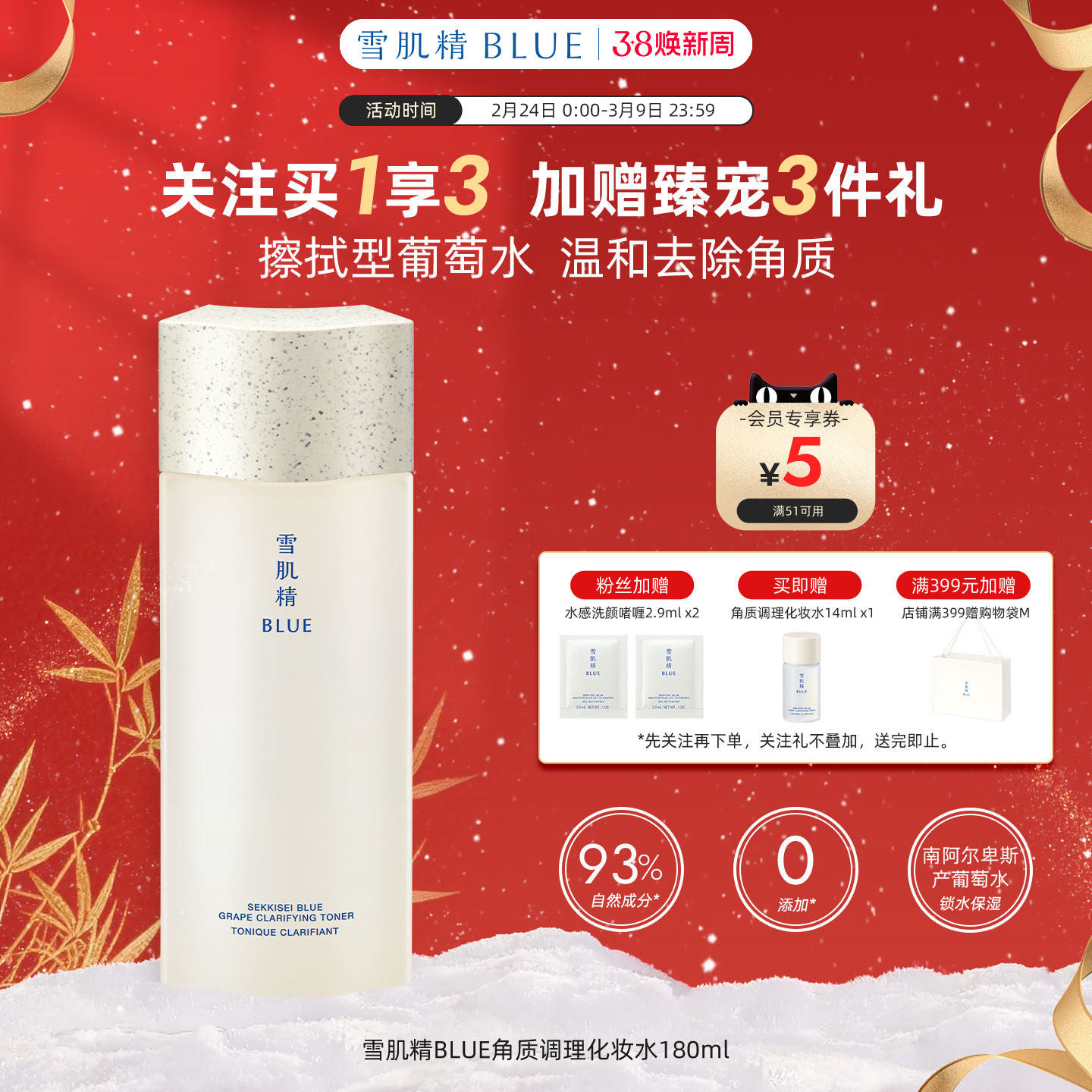 雪肌精BLUE青粹角质调理化妆水180ml高丝葡萄水去角质提亮清洁