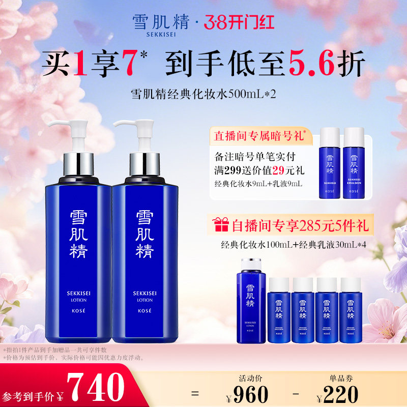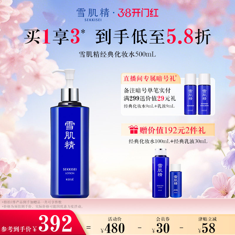 包邮雪肌精化妆水500ml清爽型/莹润型雪水爽肤湿敷保湿提亮限量版