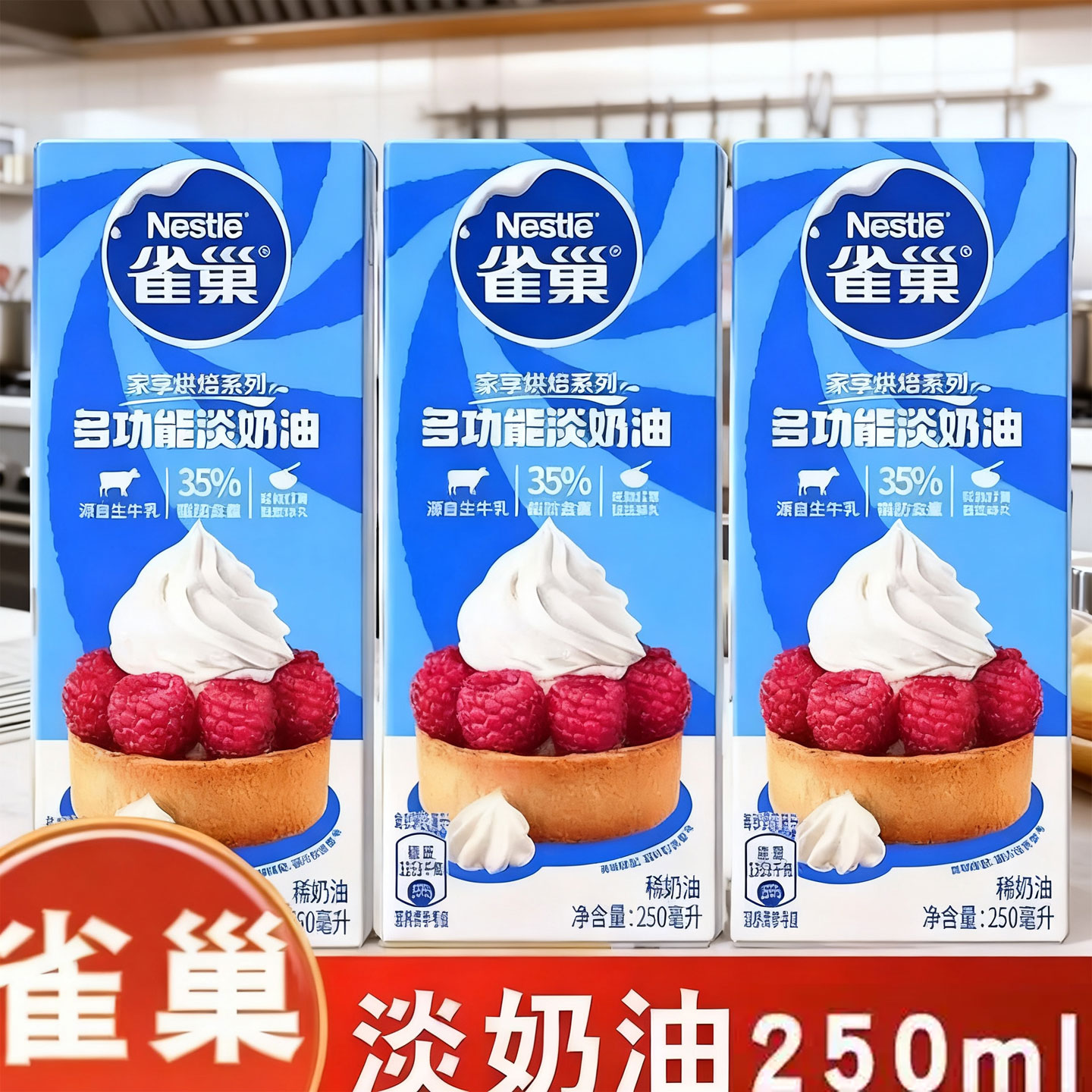 雀巢淡奶油动物性鲜奶油做蛋糕蛋挞裱花易打发250ml原装烘焙原料