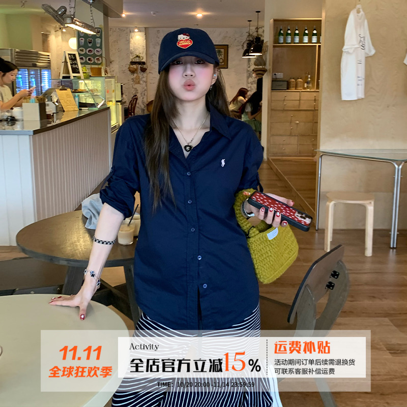 大码胖mm衬衫女设计感小众2025春夏港味宽松防晒外套衬衣薄款上衣