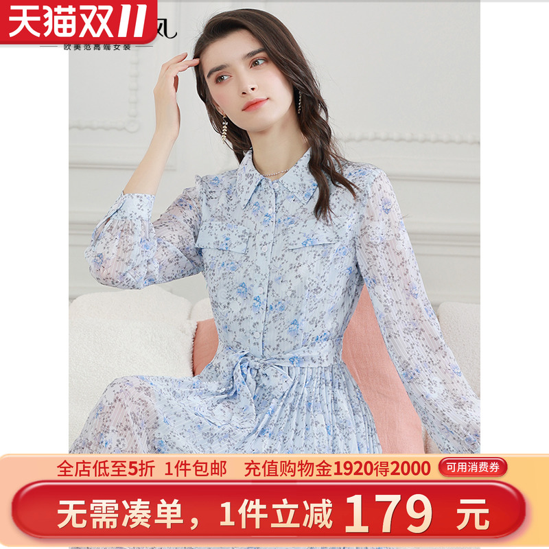 - 长袖雪纺连衣裙长款碎花裙长裙