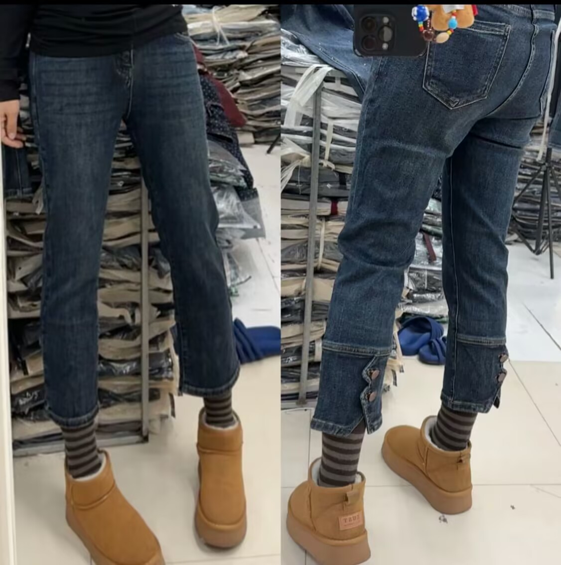 2025年秋冬新款后脚两粒扣不规则裤脚牛仔裤韩版百搭水洗八分裤潮
