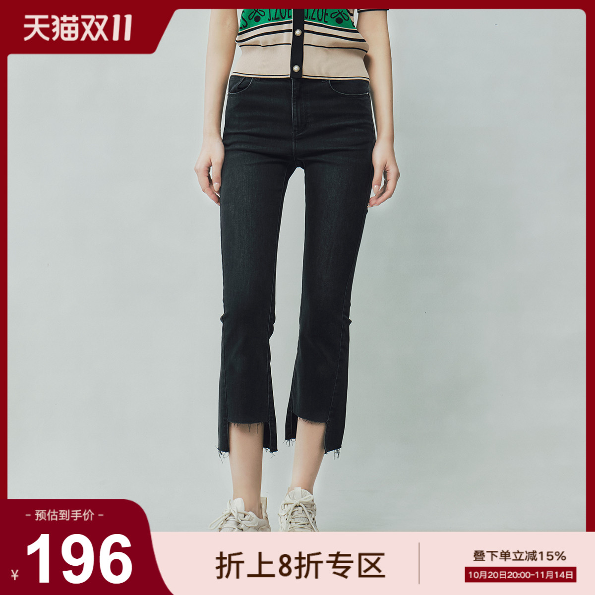 Gitti/吉蒂秋款不规则裤脚显瘦弹力牛仔裤女百搭九分裤G245002