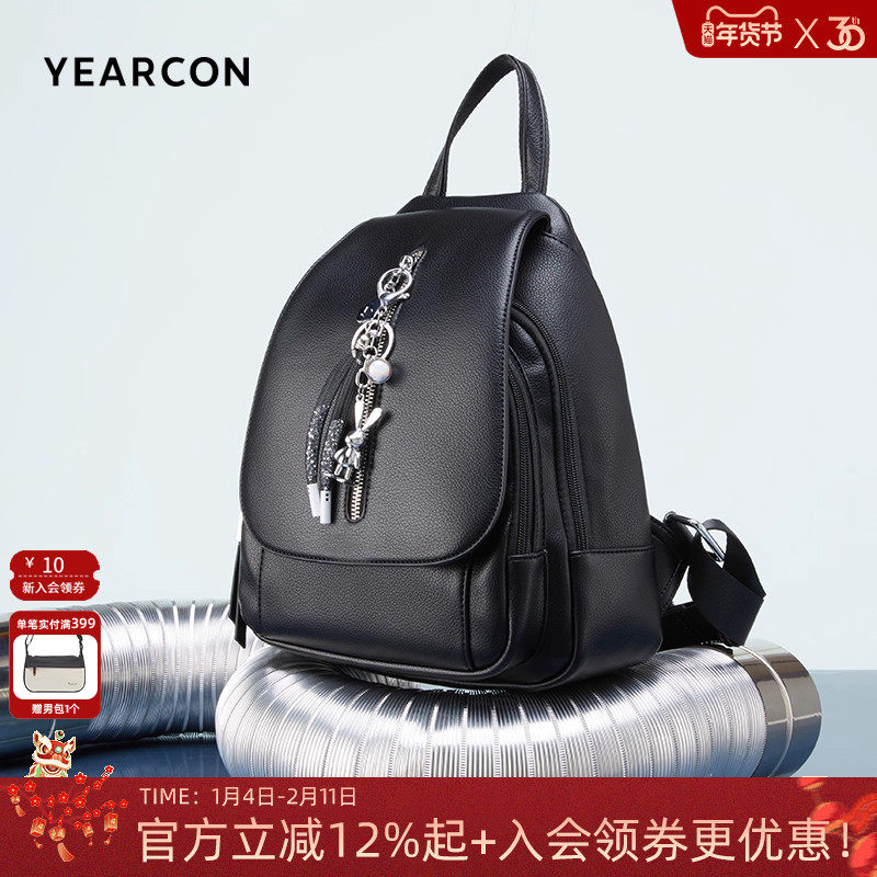 意尔康双肩包女2025新款黑色时尚背包大容量旅行包春夏百搭通勤包