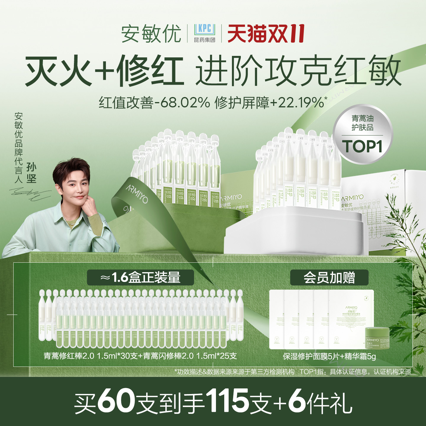 【孙坚同款】安敏优青蒿修红棒2.0次抛精华晒后舒缓敏感修红透亮