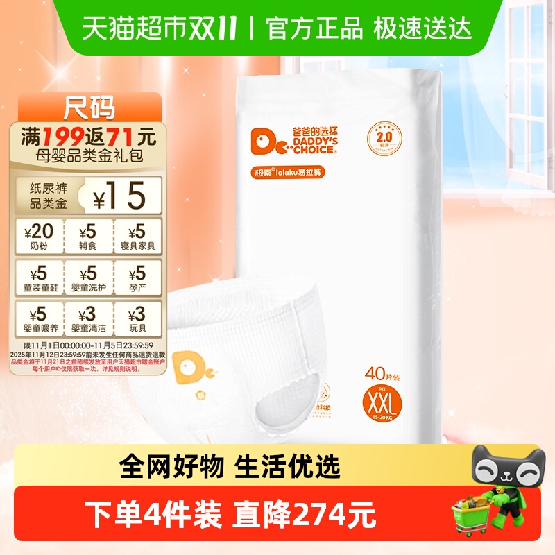 爸爸的选择 2.0婴儿轻薄纸尿裤拉拉裤男女L宝宝干爽透气XXL尿不湿
