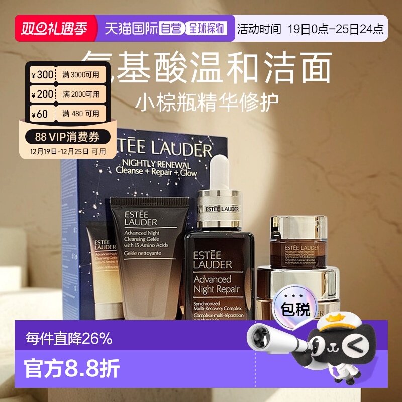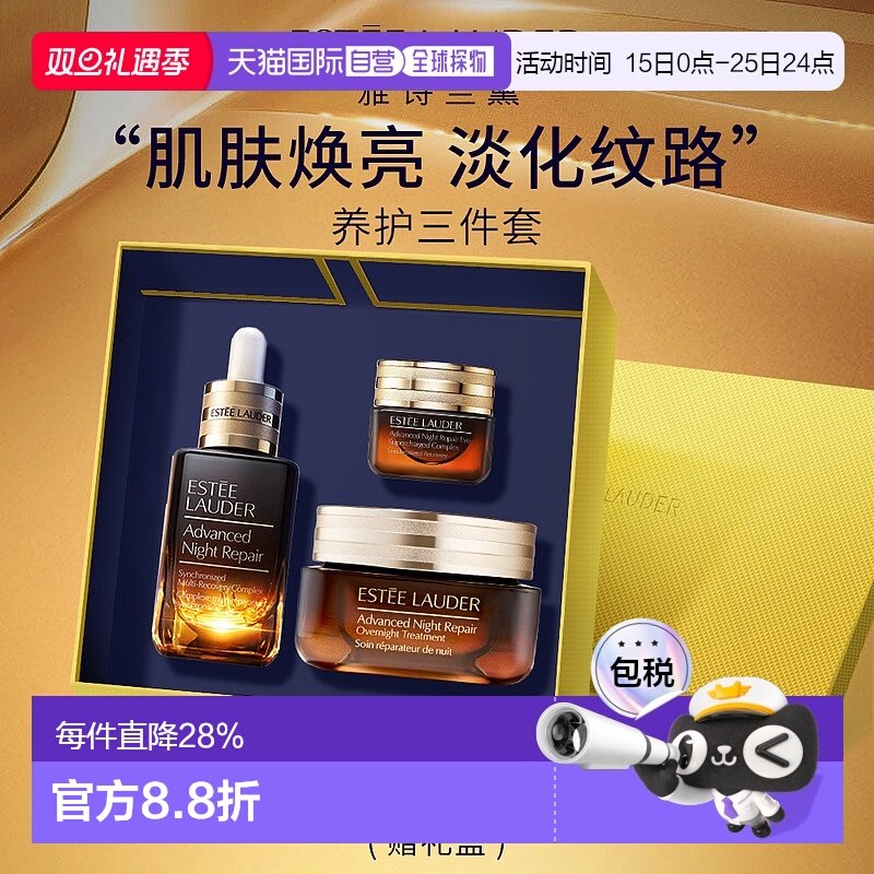 香港直邮Estee Lauder雅诗兰黛小棕瓶棕罐护肤三件套礼盒套装正品