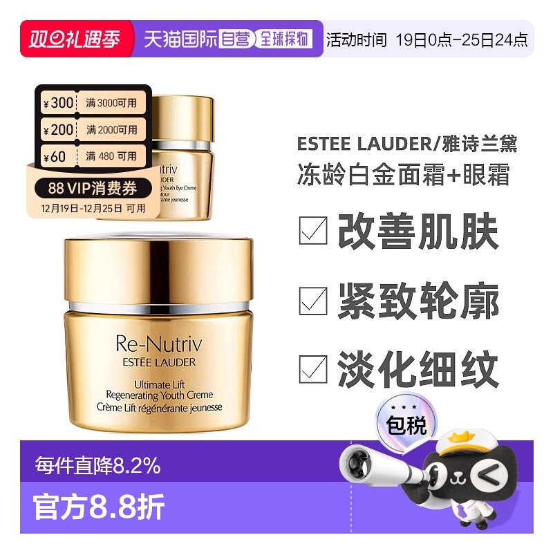 香港直邮Estee Lauder雅诗兰黛白金眼面冻龄套装面霜+眼霜正品