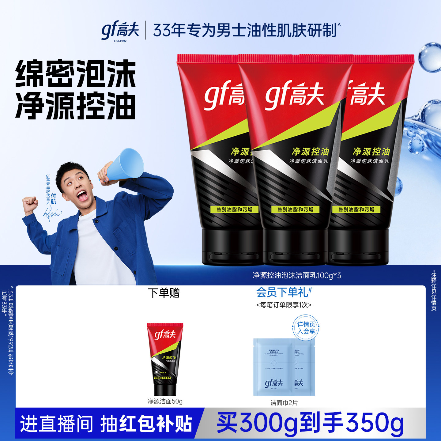 gf高夫男士官方旗舰店控油洗面奶男士专用洁面泡沫套装官网正品