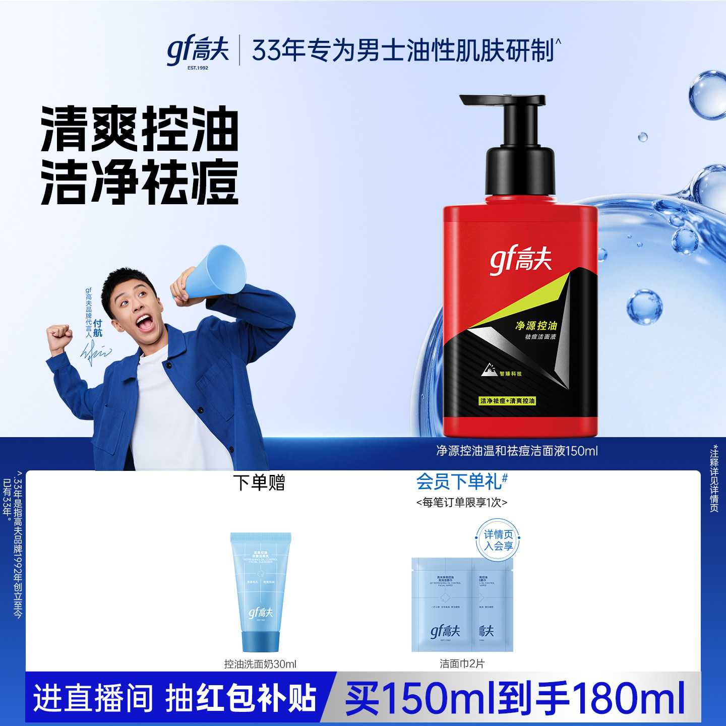 gf高夫男士专用洗面奶清爽控油氨基酸男生洁面乳水杨酸官方正品