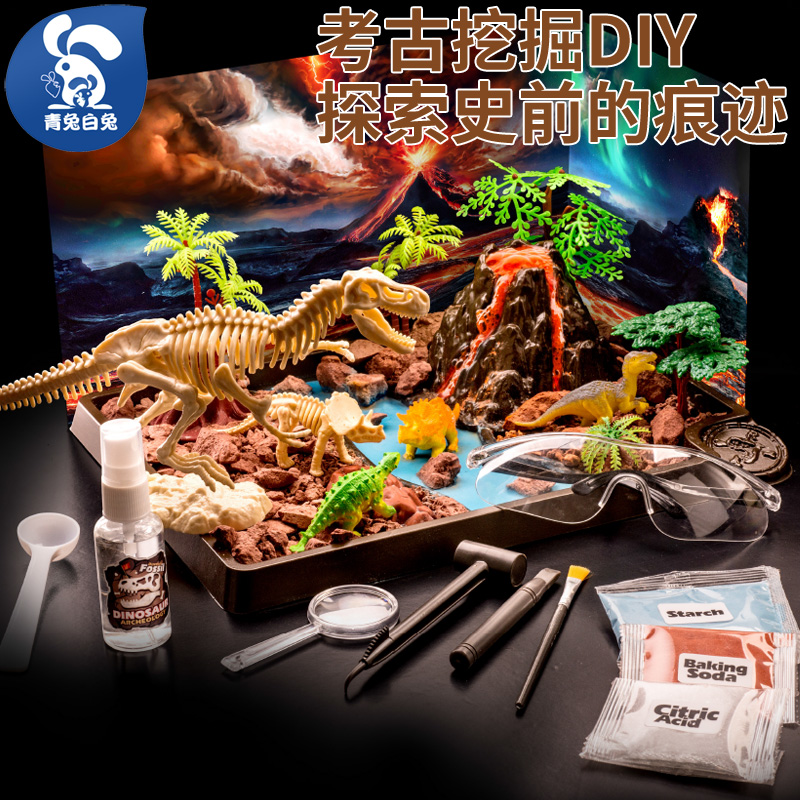考古挖掘儿童科学实验套装恐龙化石道具模型火山爆发玩具diy手工