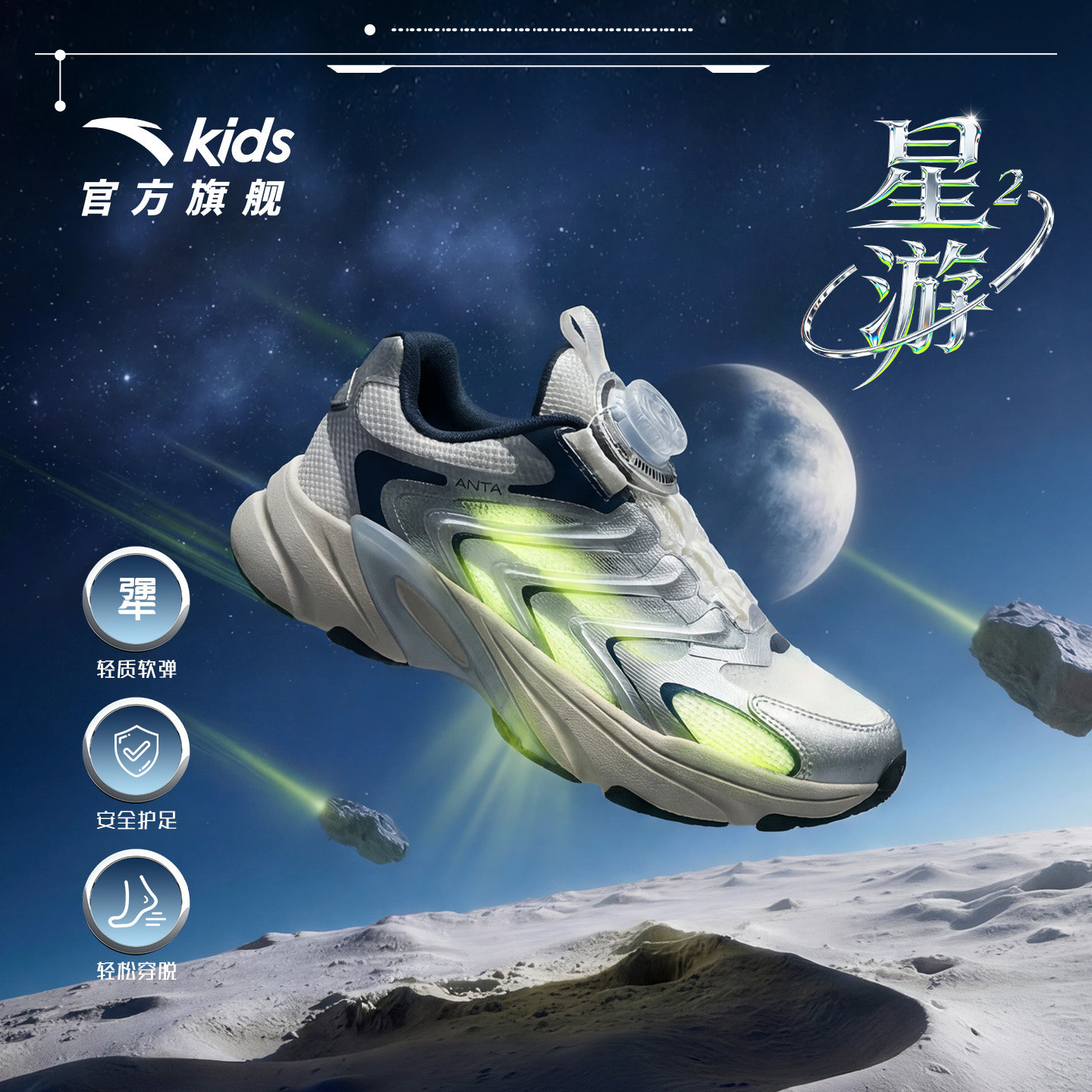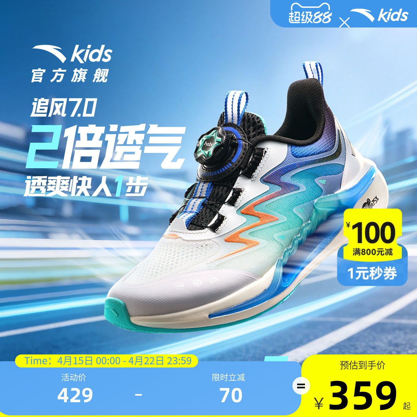 安踏儿童运动鞋驭风2男童鞋跑鞋2026夏季新款网面透气旋钮运动鞋