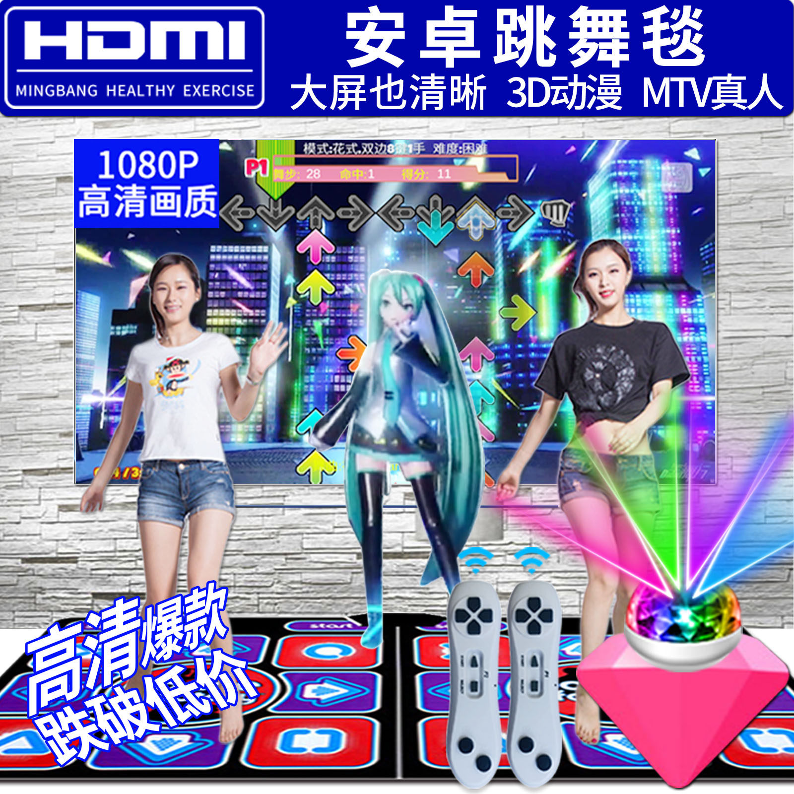 舞霸王无线双人跳舞毯HDMI电视接口跳舞机家用体感手舞足蹈跑步毯