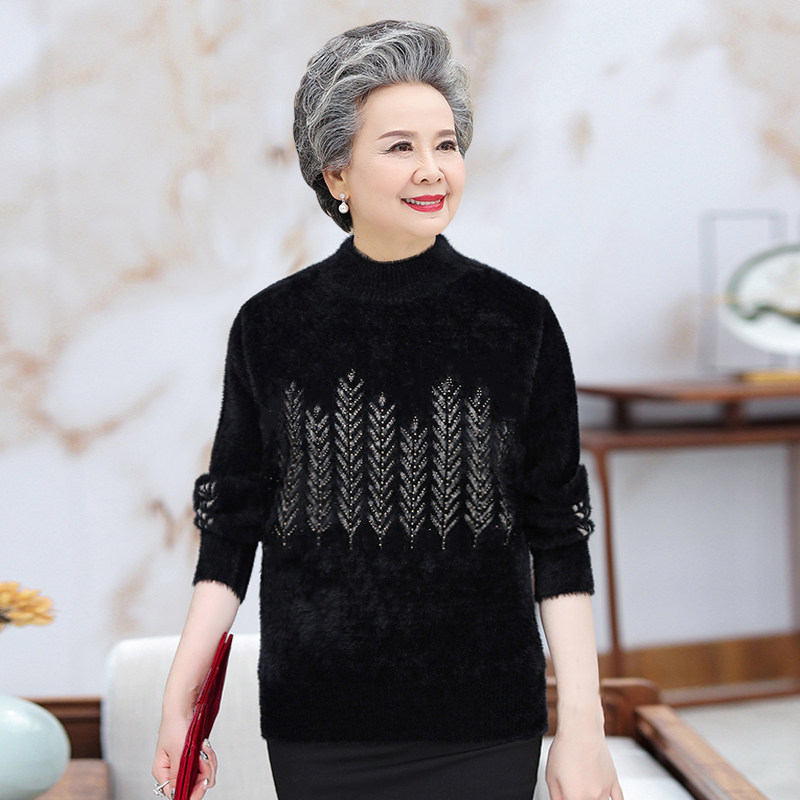 中老年套头毛衣女春秋冬妈妈外穿仿水貂绒针织衫宽松2025奶奶毛衫