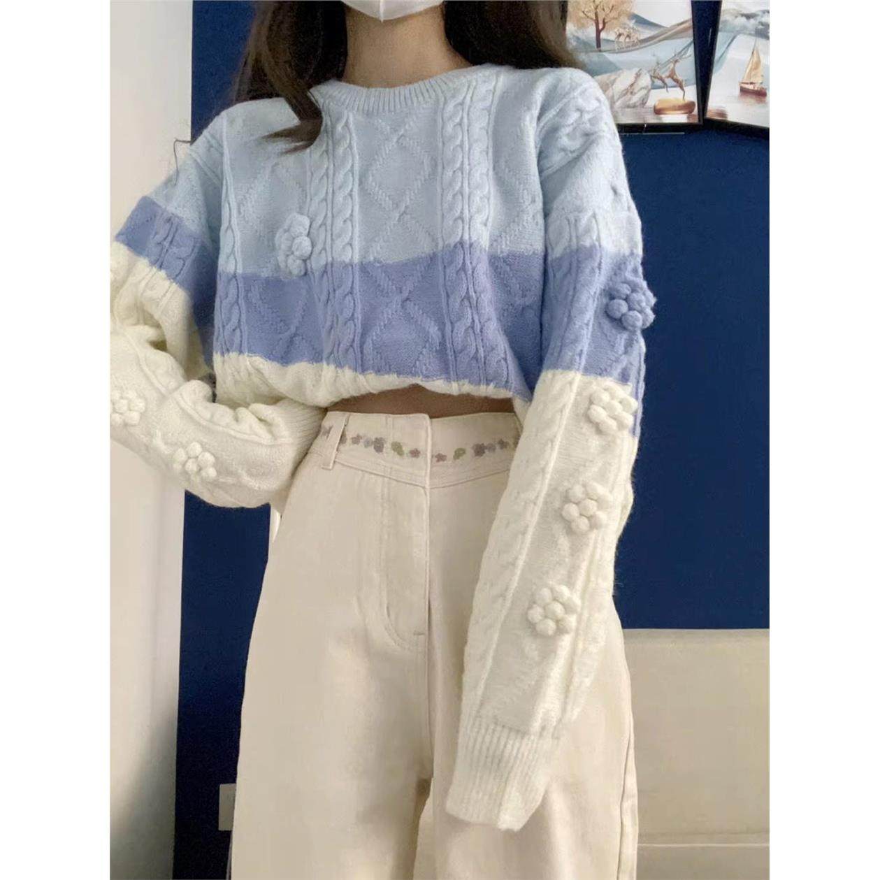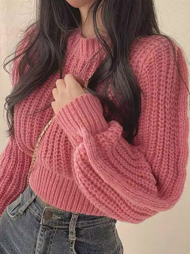 软糯短款套头毛衣女春秋洋气复古慵懒风针织打底衫小个子内搭上衣