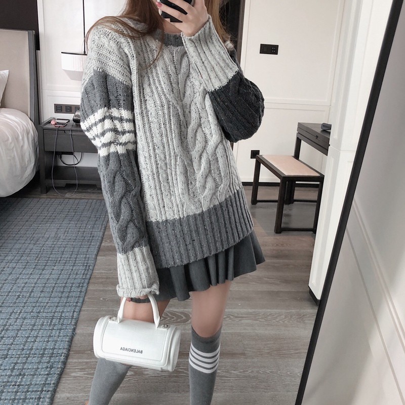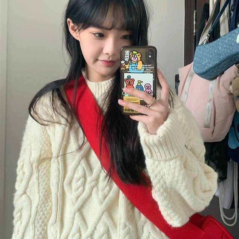 一只西由XIYO◆圆领套头毛衣女春秋韩系慵懒宽松复古麻花针织上衣