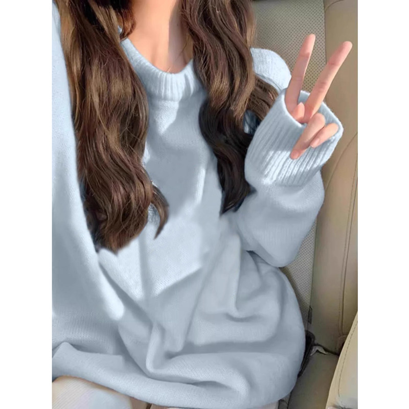 秋冬奶fufu软糯加厚圆领套头毛衣女春秋宽松慵懒风显瘦针织衫上衣