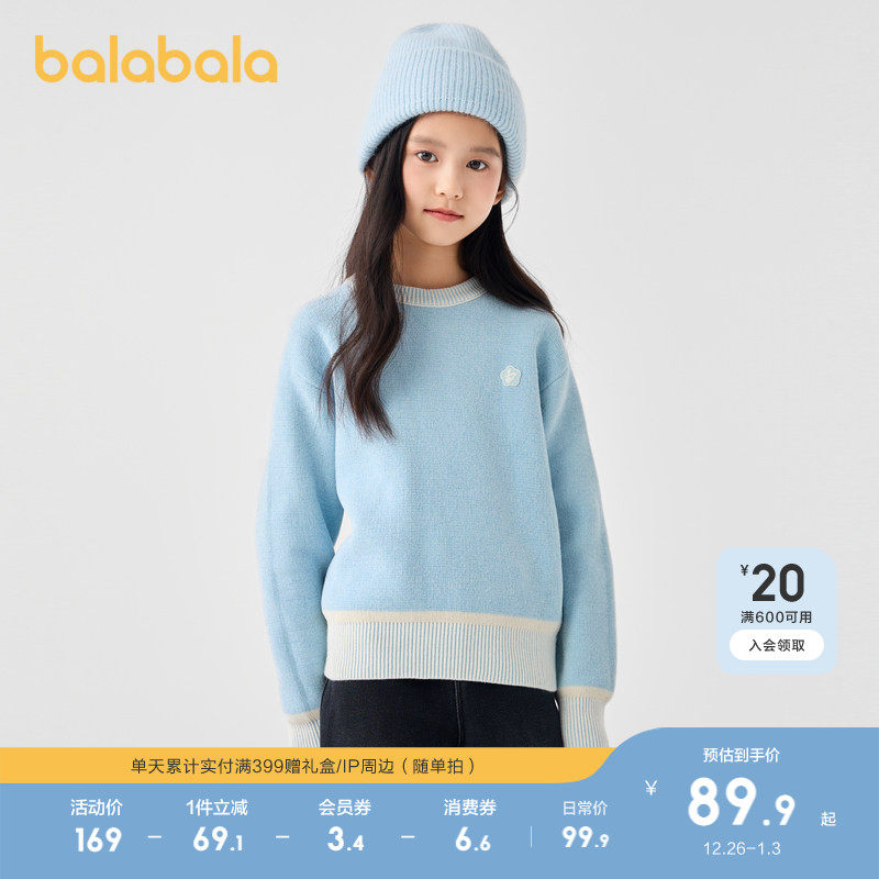 巴拉巴拉儿童针织衫男童女童毛衣春秋款童装中大童宝宝套头打底衫
