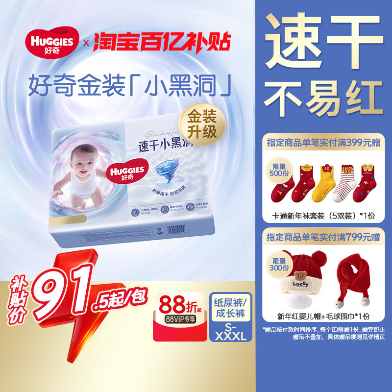 好奇金装纸尿裤拉拉裤S-4XL速干小黑洞速干不易红透气婴儿尿不湿