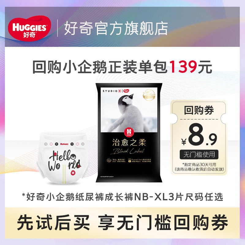 【推广S】好奇奢柔顶配治愈之柔黑标小企鹅裤纸尿裤成长裤NB-L3片