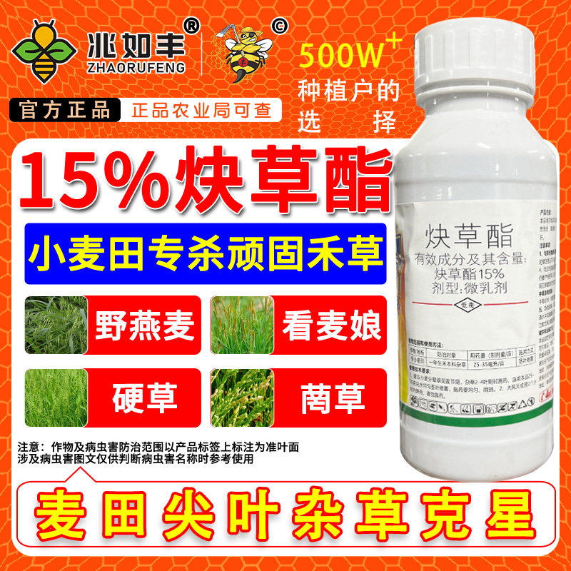 兆如丰15%炔草酯除草剂小麦田苗后禾本科杂草看麦娘野燕麦专用药