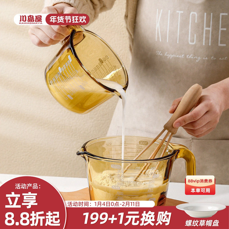 川岛屋过滤玻璃量杯带刻度厨房用食品级耐高温大容量烘焙打鸡蛋杯