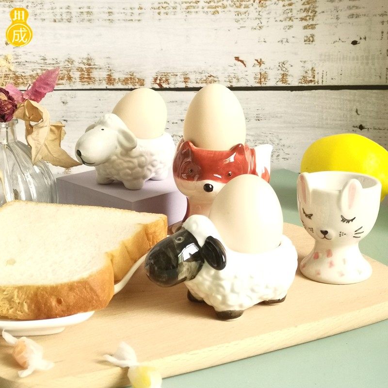 鸡蛋托陶瓷卡通蛋托杯摆件创意可爱早餐鸡蛋收纳碟碗餐具熟鸡蛋杯