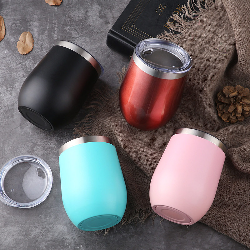 蛋壳杯 跨境直供304不锈钢双层12oz喷塑鸡蛋杯保温咖啡红酒杯logo