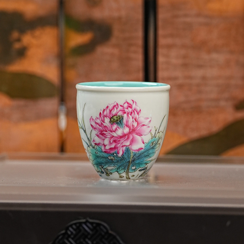 里作紫烟手绘牡丹花鸡蛋杯创意手工堆雕绘茶杯主人杯家用陶瓷单杯