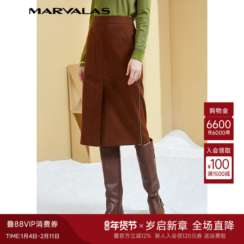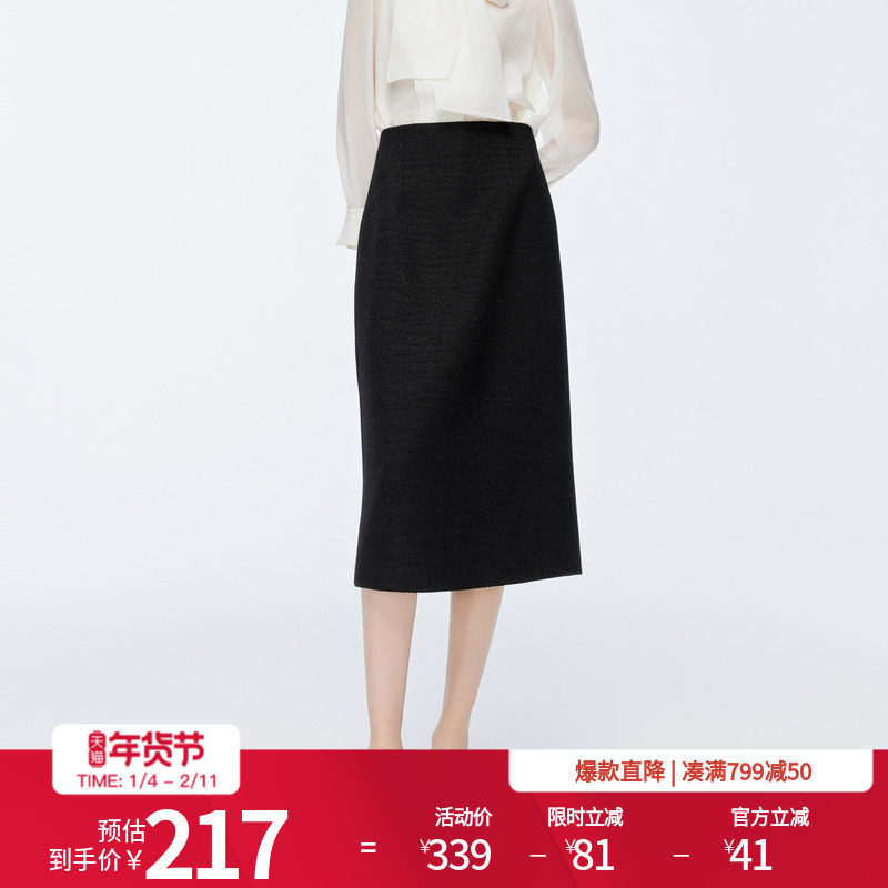 - 毛呢裙秋冬半身长款