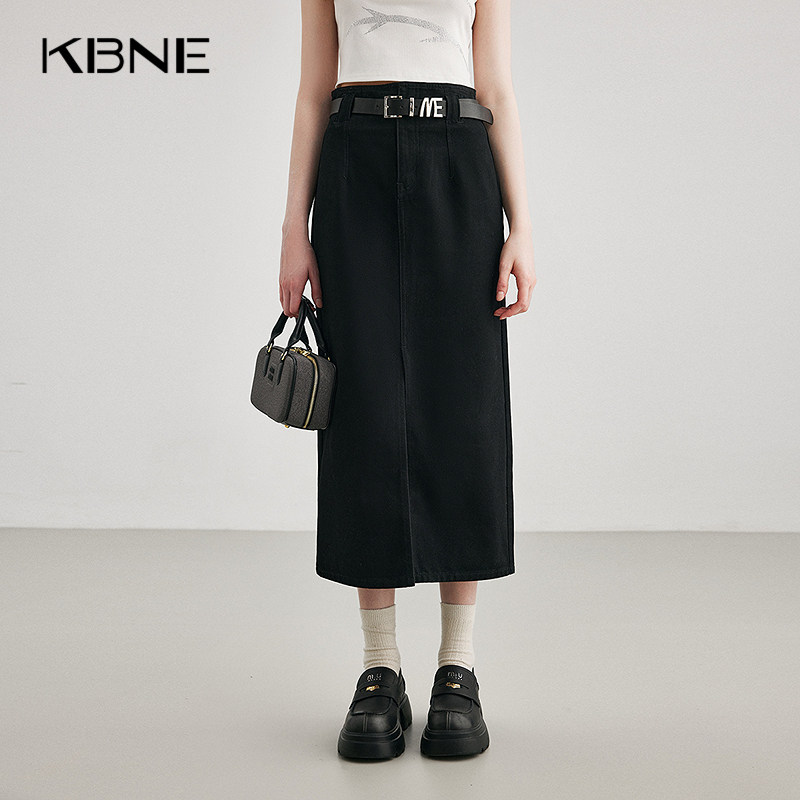 KBNE【商场同款】牛仔半身裙女2026春新款流行开叉裙子A字裙包裙