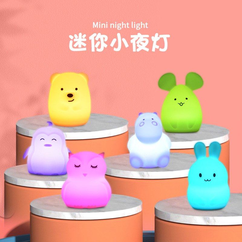 USB充电七彩硅胶动物灯可变色拍拍小夜灯卧室客厅婴儿喂奶小台灯
