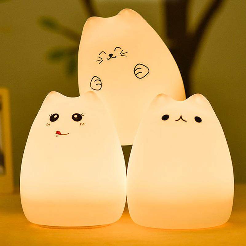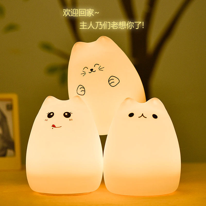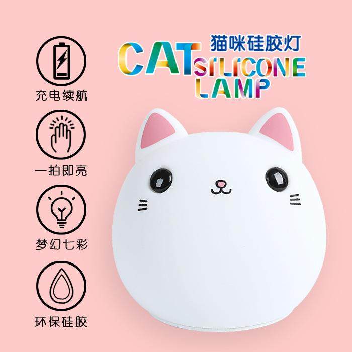 直销新款七彩猫咪硅胶动物小夜灯可爱创意充电式减压卡通台灯卧室