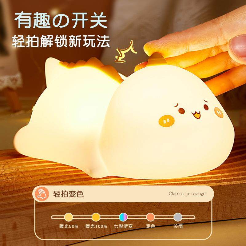 小恐龙拍拍灯七彩充电音乐硅胶灯卡通动物纪念小夜灯爆款龙年礼物