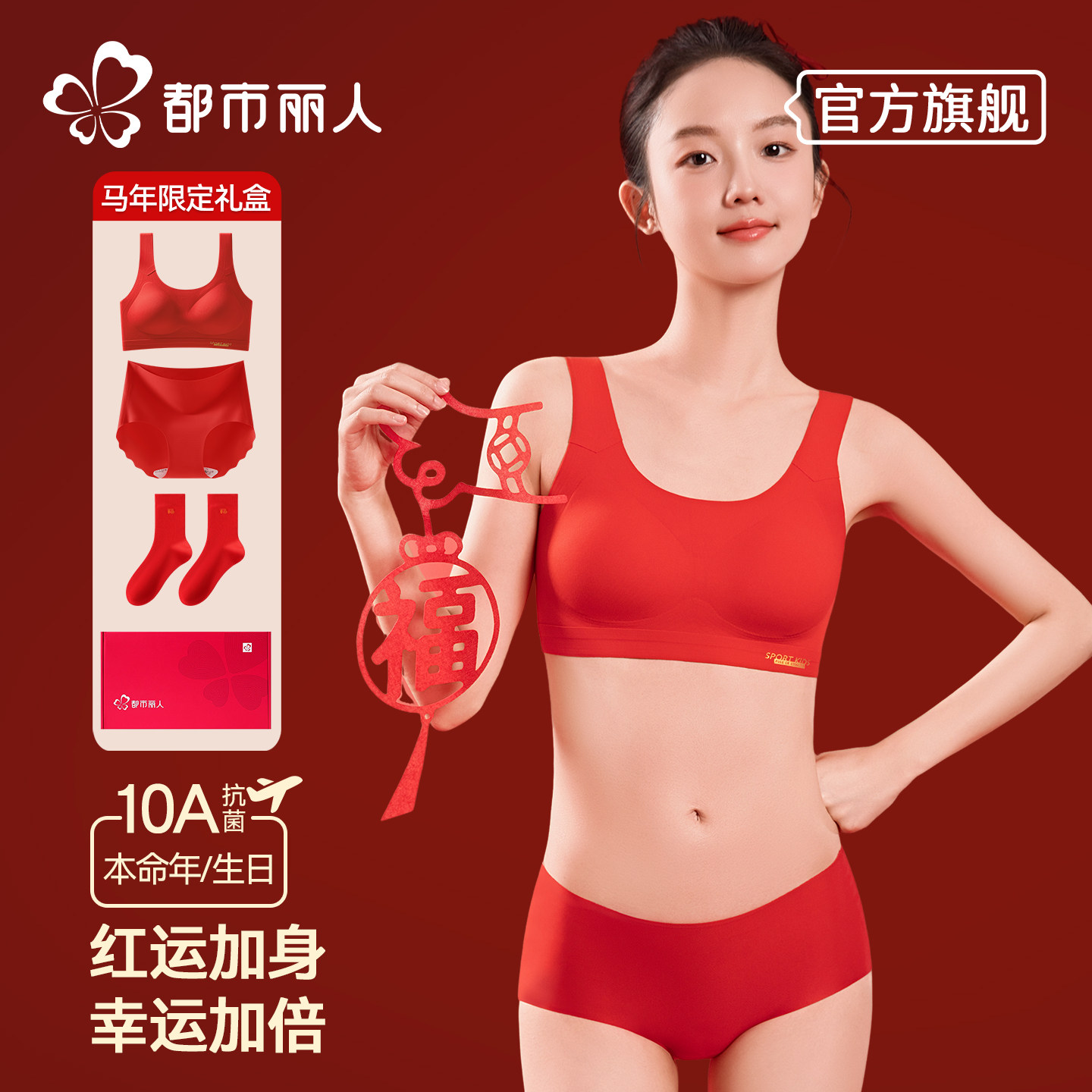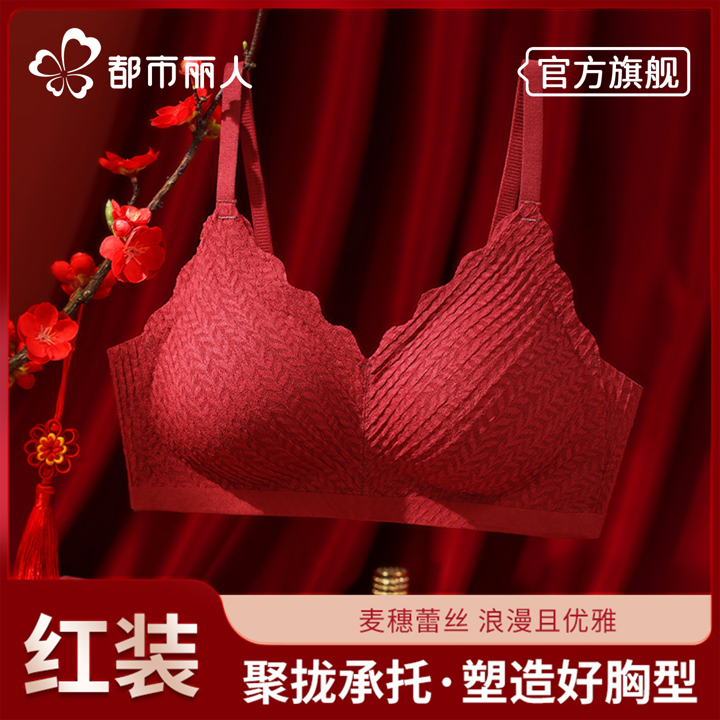 都市丽人本命年内衣套装女小胸聚拢少女文胸马年结婚安哥拉红礼盒