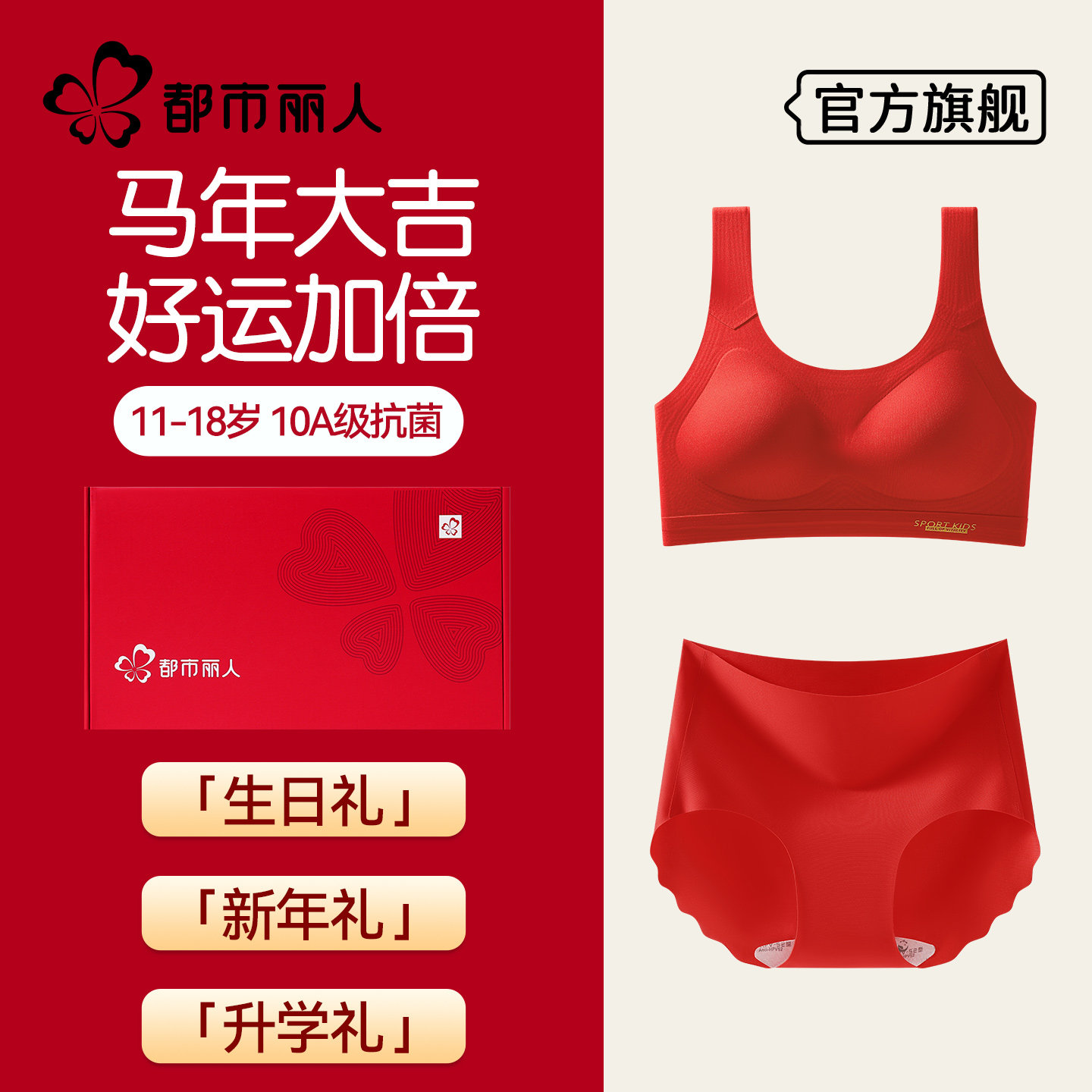 都市丽人女童本命年红色内衣套装2026马年少女发育期文胸背心12岁