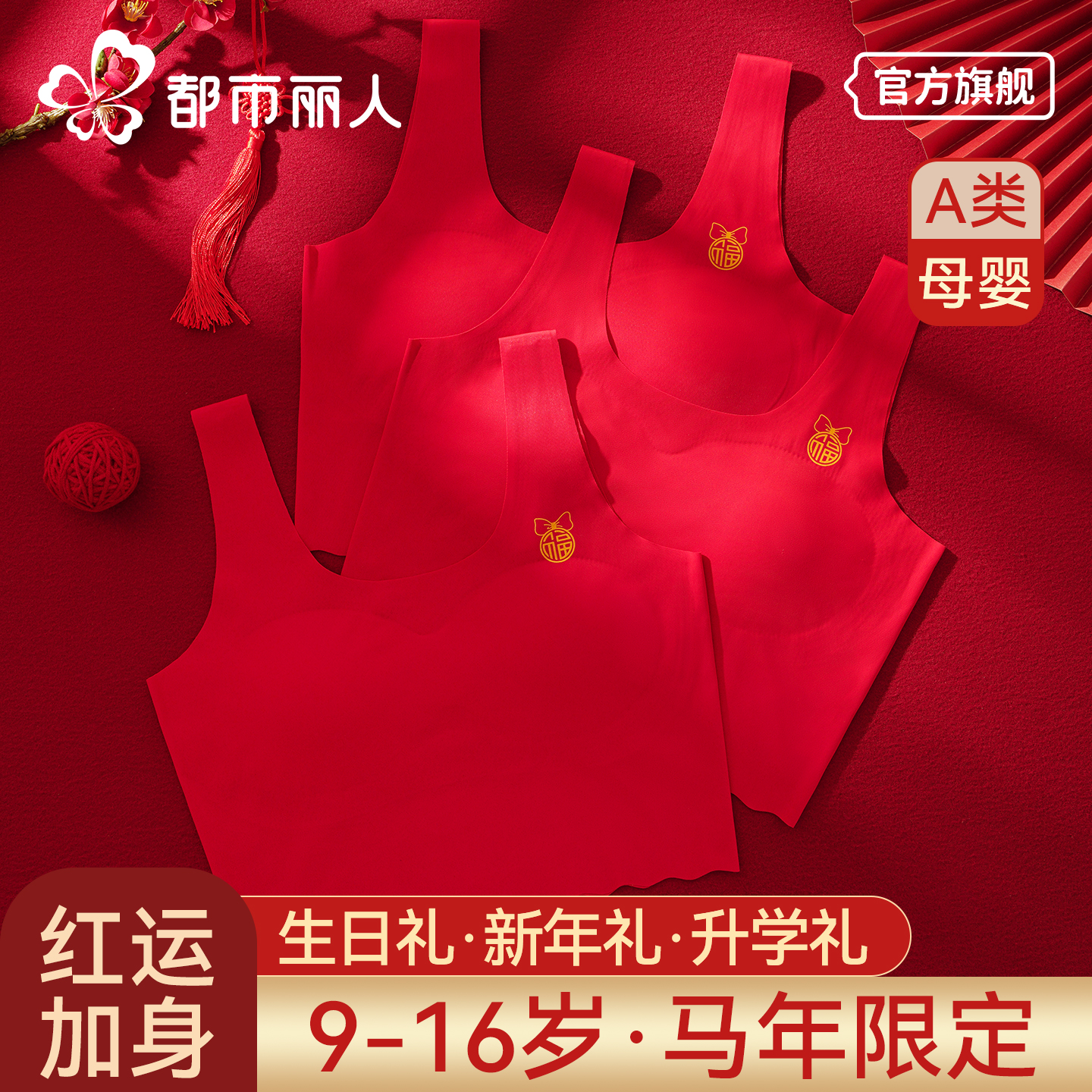 都市丽人女童本命年红色内衣2026马年初高中生发育期背心少女文胸