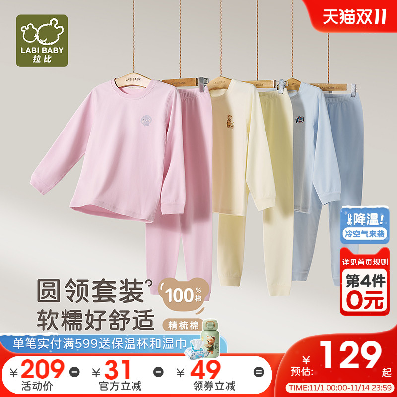 拉比儿童内衣保暖纯棉宝宝长袖套装25秋季新款居家秋衣秋裤2套装