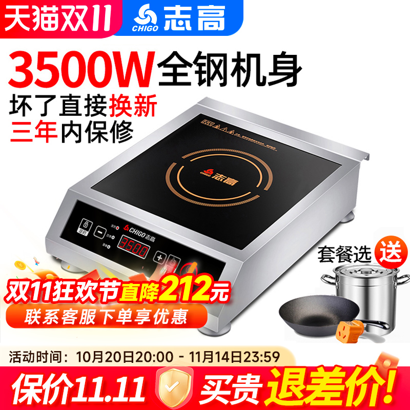 志高电磁炉商用3500w平面大功率猛火爆炒家用饭店用防水电炒炉