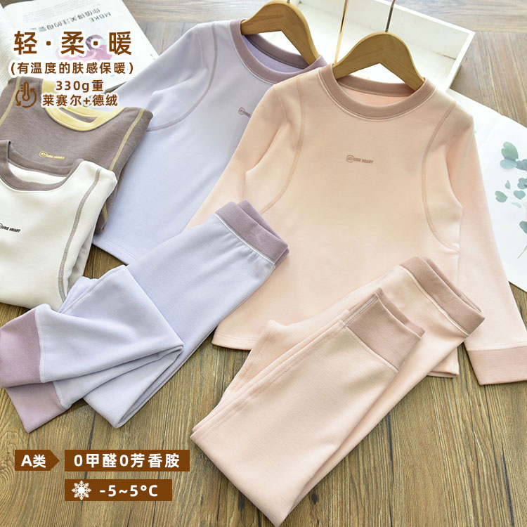 厚实小奶皮男女童软糯糖果秋衣秋裤套装中大儿童校服保暖内衣秋冬