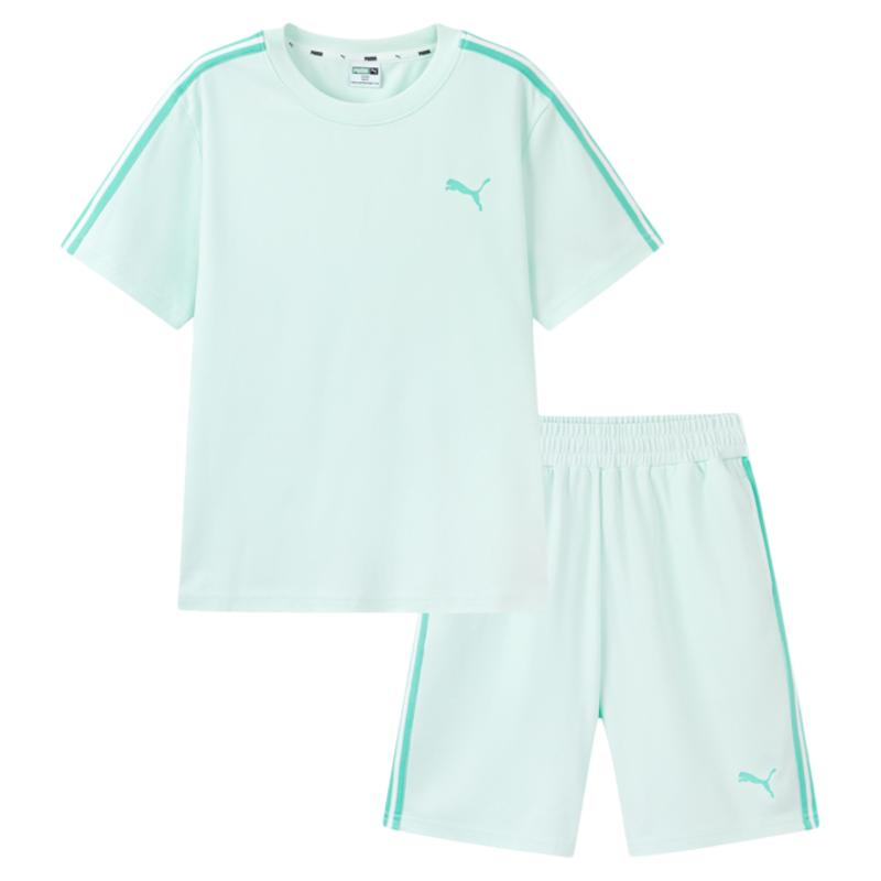 PUMA彪马女童T恤套装新款夏季中大儿童跑步运动短袖裤速干篮球衣t
