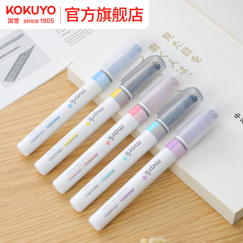 官方旗舰店 kokuyo国誉日本进口mark+彩色荧光笔划重点标记记号笔学生用学习用品文具双头淡色系深色系粗头笔