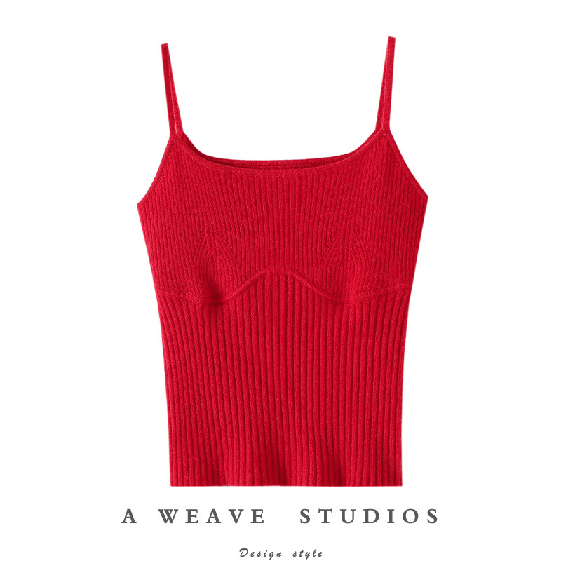 风靡时尚~平口细肩带100%纯山羊绒吊带背心女针织吊带坑条弹力