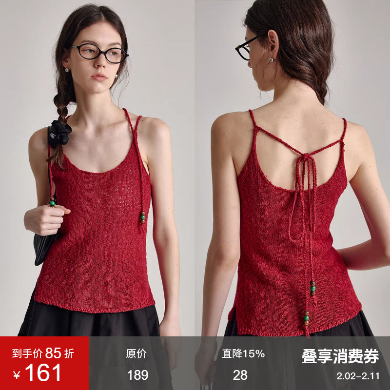 范洛2026夏季新款吊带背心女针织肌理感修身显瘦复古显白U领上衣