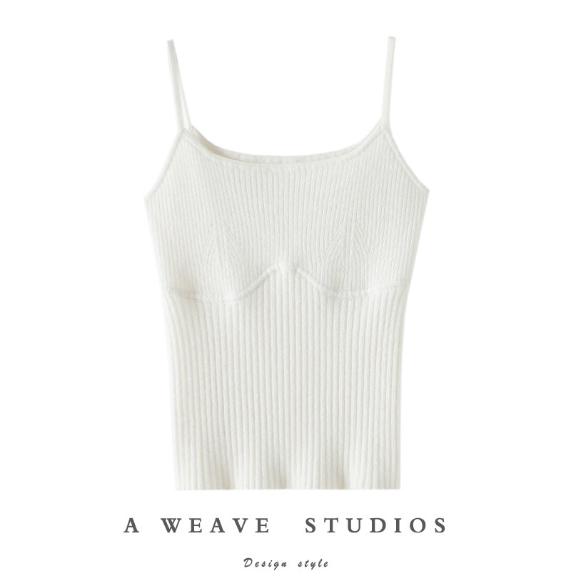 Thas9i九亿 麻豆公式 天丝白色小吊带背心女夏日海边百搭针织上衣