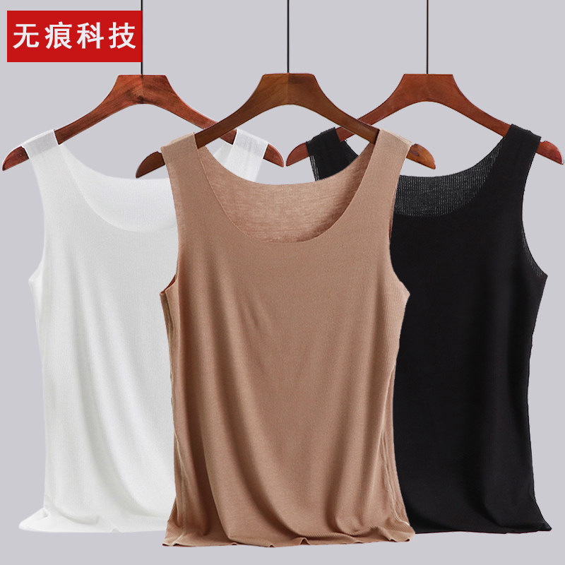 莫代尔无痕小吊带背心女针织冰丝打底大码内搭外穿白色无袖上衣夏