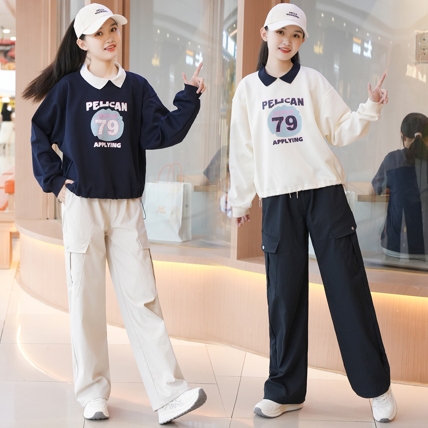 女大童秋款套装2025新款初高中生女孩青少年时尚翻领卫衣搭工装裤