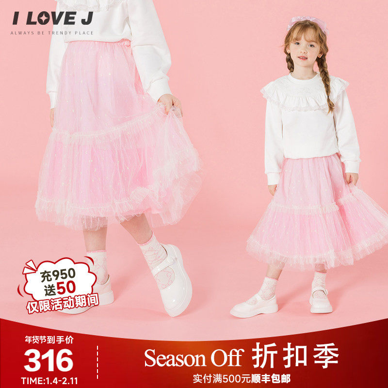 ILOVEJ韩国童装2026春季女童网纱半身裙中长款网纱公主裙/JXSSK13