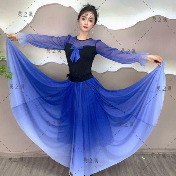 新款渐变网纱半身裙中长款舞蹈裙广场舞吉特巴水兵现代舞古典舞裙